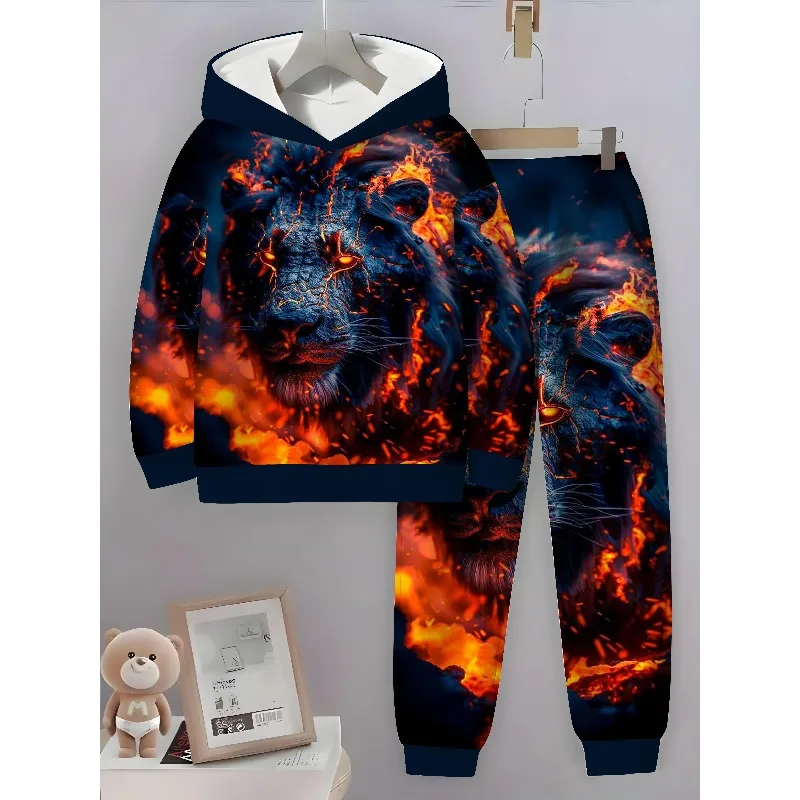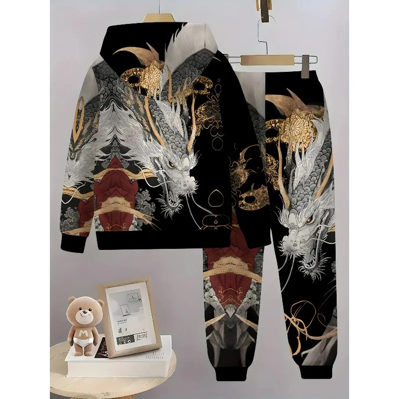 3D Digital Animal Monkey Brown Bear Dragon Printed Hoodie and Sports Pants 2-piece Simple Fashion Casual Set