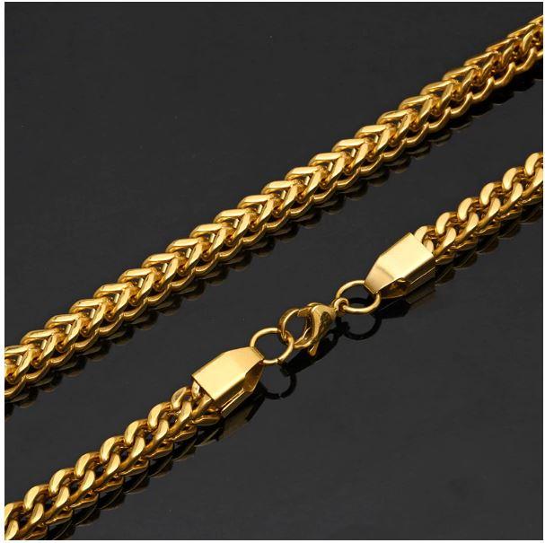 Pure Steel 5 MM Solid Steel Heavy Franco Chain in High Gloss finish as a stunning package to suite your perfect occasion or for daily wear with jeans. Available in variety of plantings in Gold and Steel plating with lobster lock. Available at low wholesale jewelry hip hop price exclusively from Bling Master.