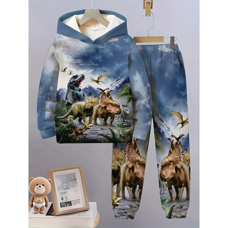 Men's 3D Printed Hoodie 2-piece Set, Fashionable for Autumn and Winter Seasons, Suitable for Outdoor Activities