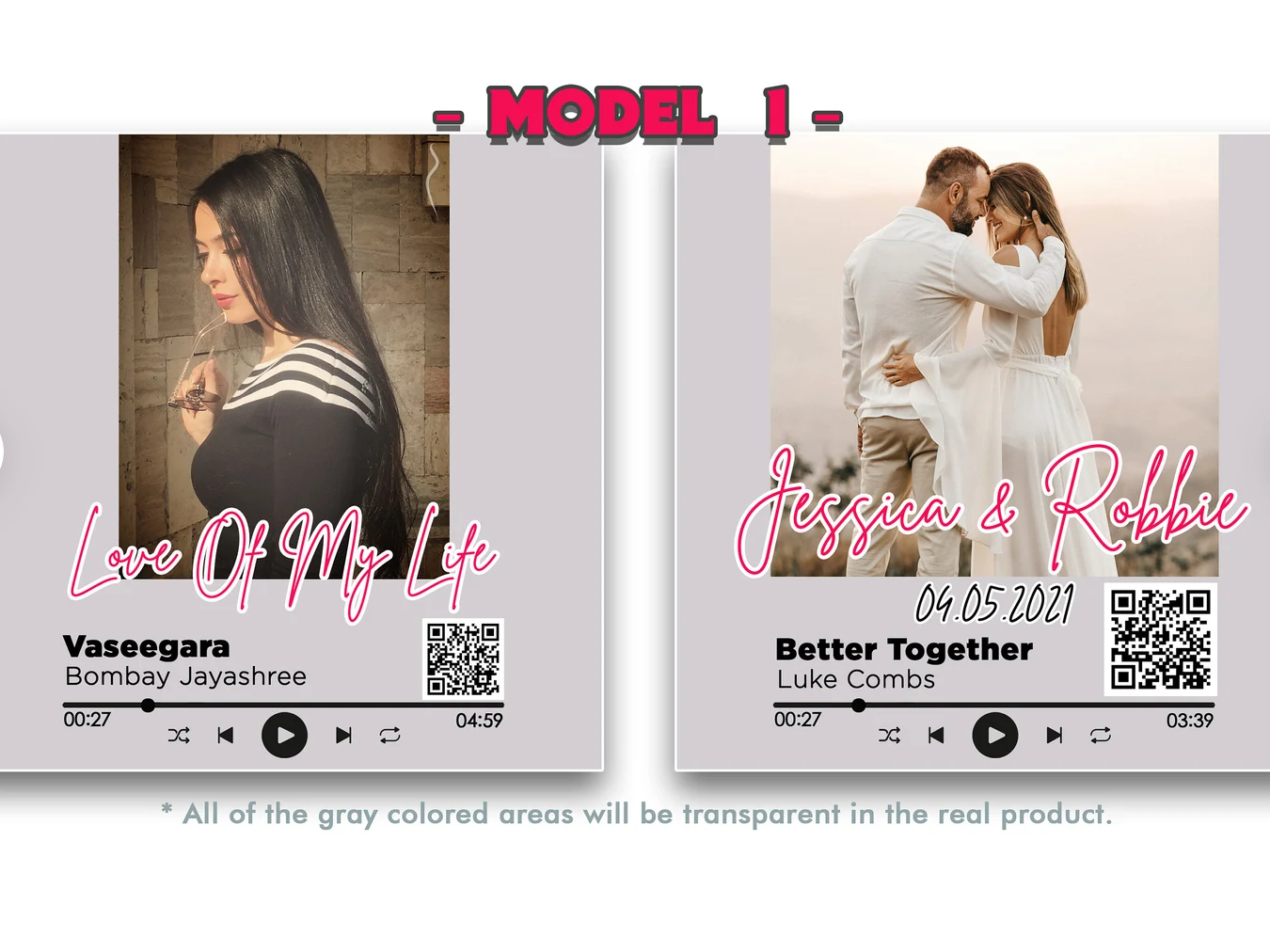 Please note that these music records are not a service offered by Spotify, Apple Music, or Youtube Music. It is completely produced by our company and the link in the QR code is provided by our customers. In this process, the above-mentioned brands of Spotify, apple music, and youtube music have no role or support for the product. Therefore, there is no action that violates the copyright.