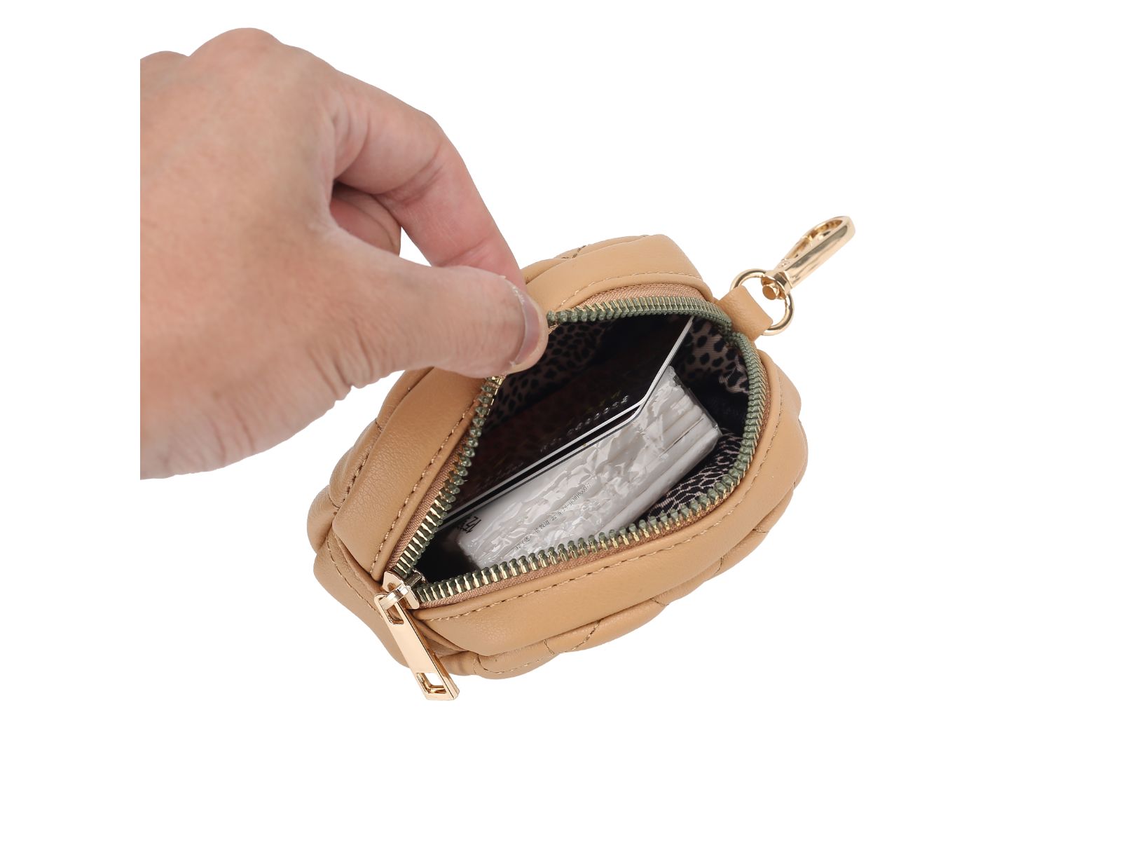 - A spacious interior and timeless silhouette make our Tansy Tote Bag an ideal everyday companion. Crafted from high-quality vegan leather with a chic quilted finish and designed with gold-tone embellishment, this tote is the perfect carryall. Unzips the top zipper closure to reveal a printed fully lined interior with two slip pockets and a wall zip pocket. The exterior features a back zippered pocket to keep your items easy to reach. The Tansy Tote bag is accented with a keychain with our round M emblem for decoration. This style has a flat base and feet for stability. The Tansy Tote bag comes with a detachable matching zippered pouch to keep your small belongings. You will love this everyday bag.